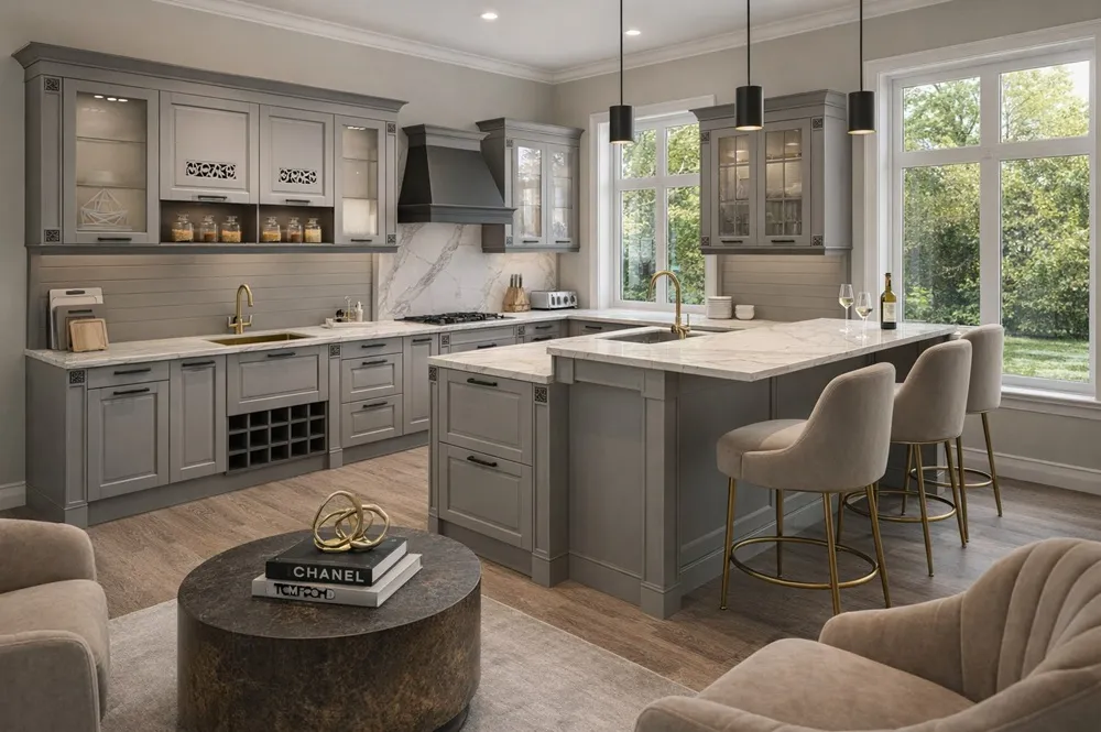 позволяют разместить множество шкафов и ящиков, сохраняя при этом свободный центр помещения. Продуманная эргономика делает процесс приготовления пищи комфортным и приятным.