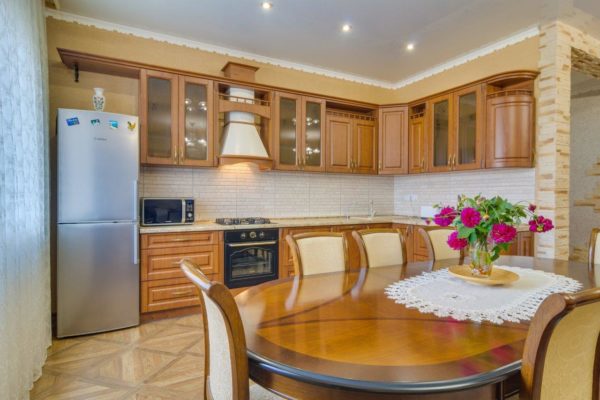 Кухня в классическом стиле всегда выглядит дорого, добротно и, вместе с тем, уютно и комфортно.